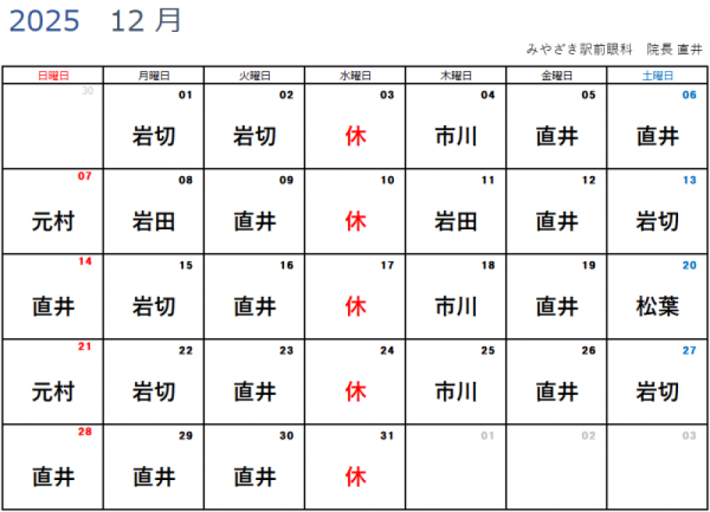 【12月担当医のお知らせ】
